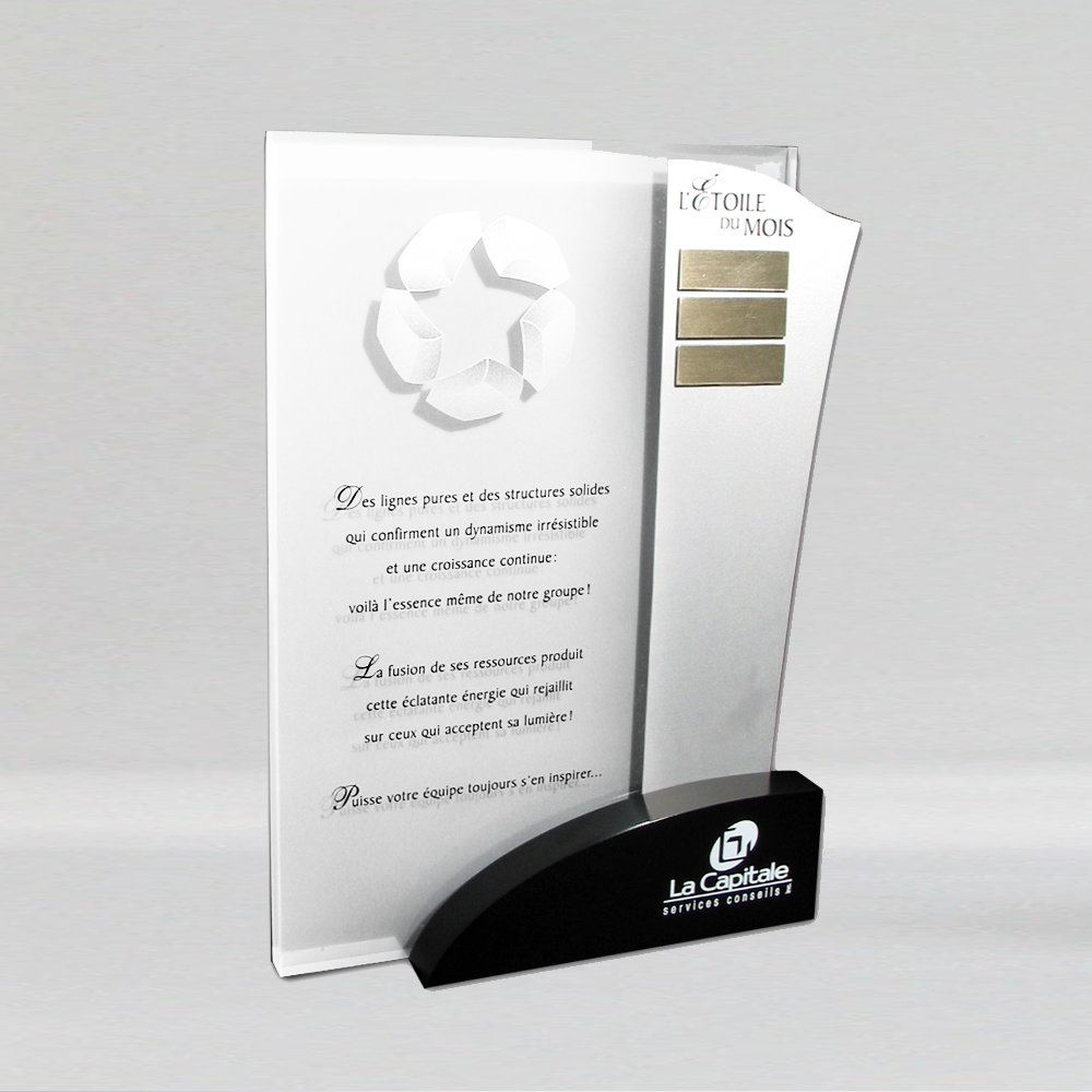 Accueil / Reconnaissance / Trophées sur mesure / Trophée d’acrylique sur mesure | La capitale Trophée d’acrylique sur mesure | La capitale Catégories : Reconnaissance, Trophées sur mesure Étiquettes : Acrylique, Base de bois Product ID: 2509 Produits similaires Trophée sculpture de bronze | Contre l’Intimidation Sculpture de bronze composée de 3 personnages et ruban... Ajout Trophée de verre | Collection Vetro | Safari Trophée hommage en verre soufflé au design vibrant de... Ajout Socrate Distinction de la Faculté des Sciences administratives... Ajout Plaque de distinction en bois | Pilotes du Saint-Laurent Plaque de distinction e... Ajout